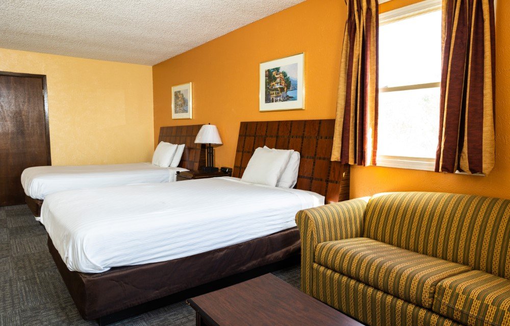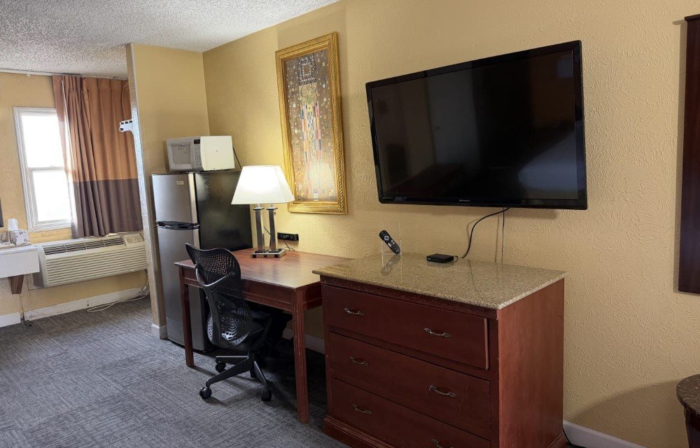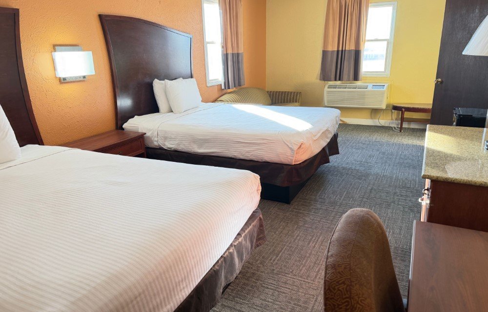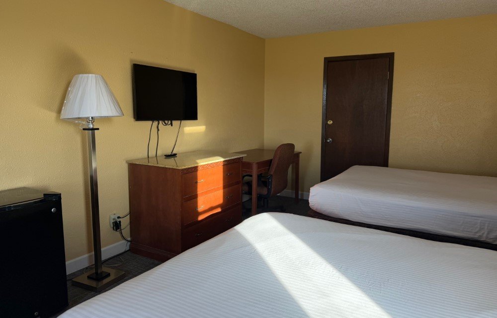 Perfect for families or groups, this spacious non-smoking Deluxe Room features one king bed and two queen beds for maximum comfort. The room includes air conditioning, free high-speed Wi-Fi, a flat-screen TV, and a work desk with chair. Guests can enjoy the convenience of a refrigerator, microwave, and USB/USB-C charging ports. A private bathroom ensures a comfortable and relaxing stay.