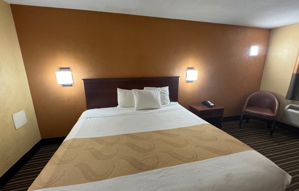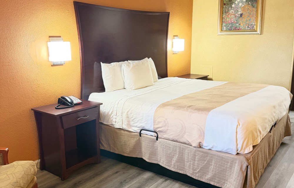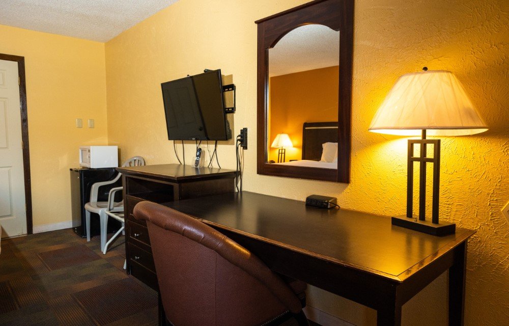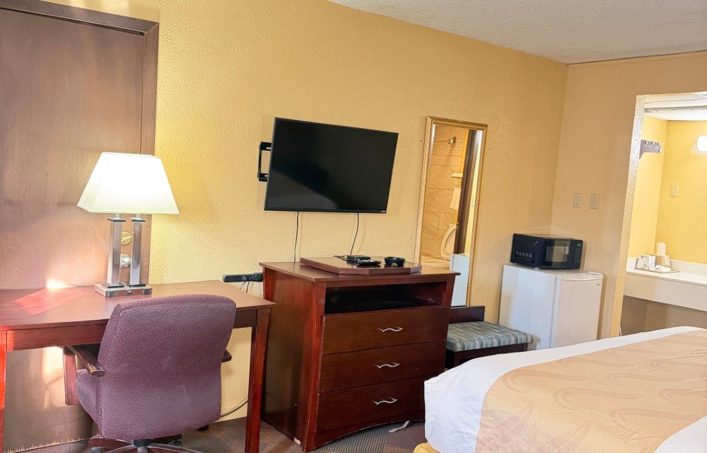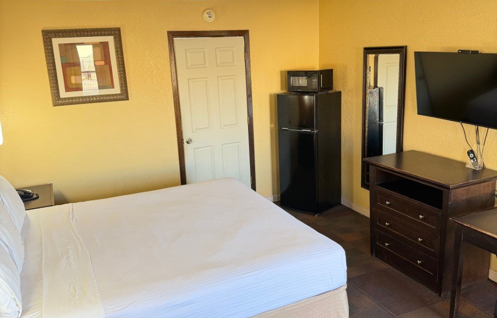 The Standard King Smoking Room provides a comfortable option for guests who prefer smoking accommodations. This room includes a king bed, air conditioning, free Wi-Fi, and a flat-screen TV. Additional amenities include a work desk, refrigerator, microwave, USB charging ports, and a private bathroom for added convenience.